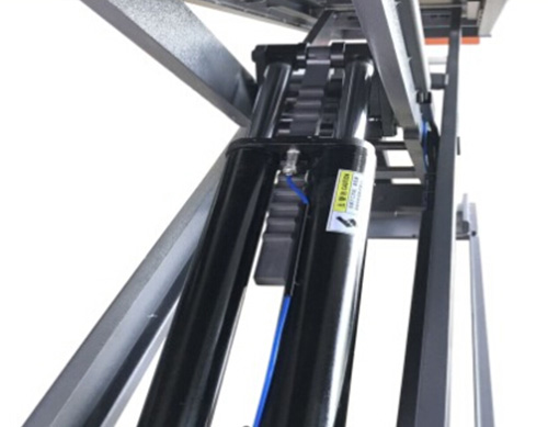 ◆ 8 cylinders, double hydraulic balance system(main lift)and mechanical safety with automatic unlock are equipped